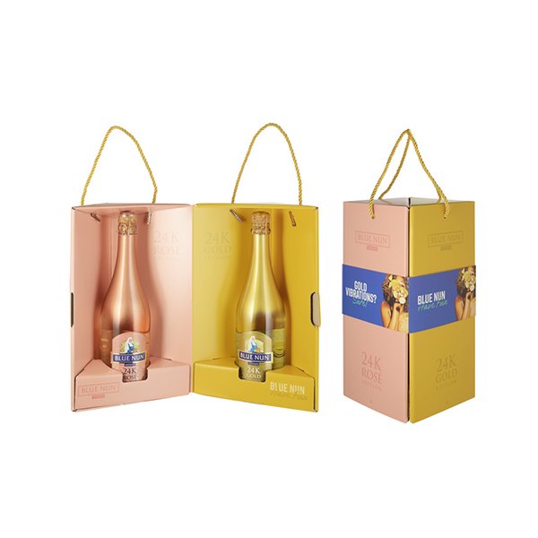 מארז נפתח מהודר המכיל שתי בקבוקי בלו נאן,מבעבע 24K גולד: המבעבע הייחודי של בלו נאן במהדורה חגיגית מיוחדת המכילה שבבי זהב אמיתי 24 קראט. ארומאטי, איכותי ומאוד מרענן. מופק מענבי טרביאנו ושרדונה מאזור הריין בגרמניה.ומבעבע 24K רוזה: יין מבעבע חצי יבש חגיגי ומהנה. מכיל שבבי זהב אמיתי 24 קראט. בעל גוון ורוד סמוק יפיפה ואופי מרענן נהדר. מעולה כאפרטיף, לארוחות קלות או לקבלות פנים.